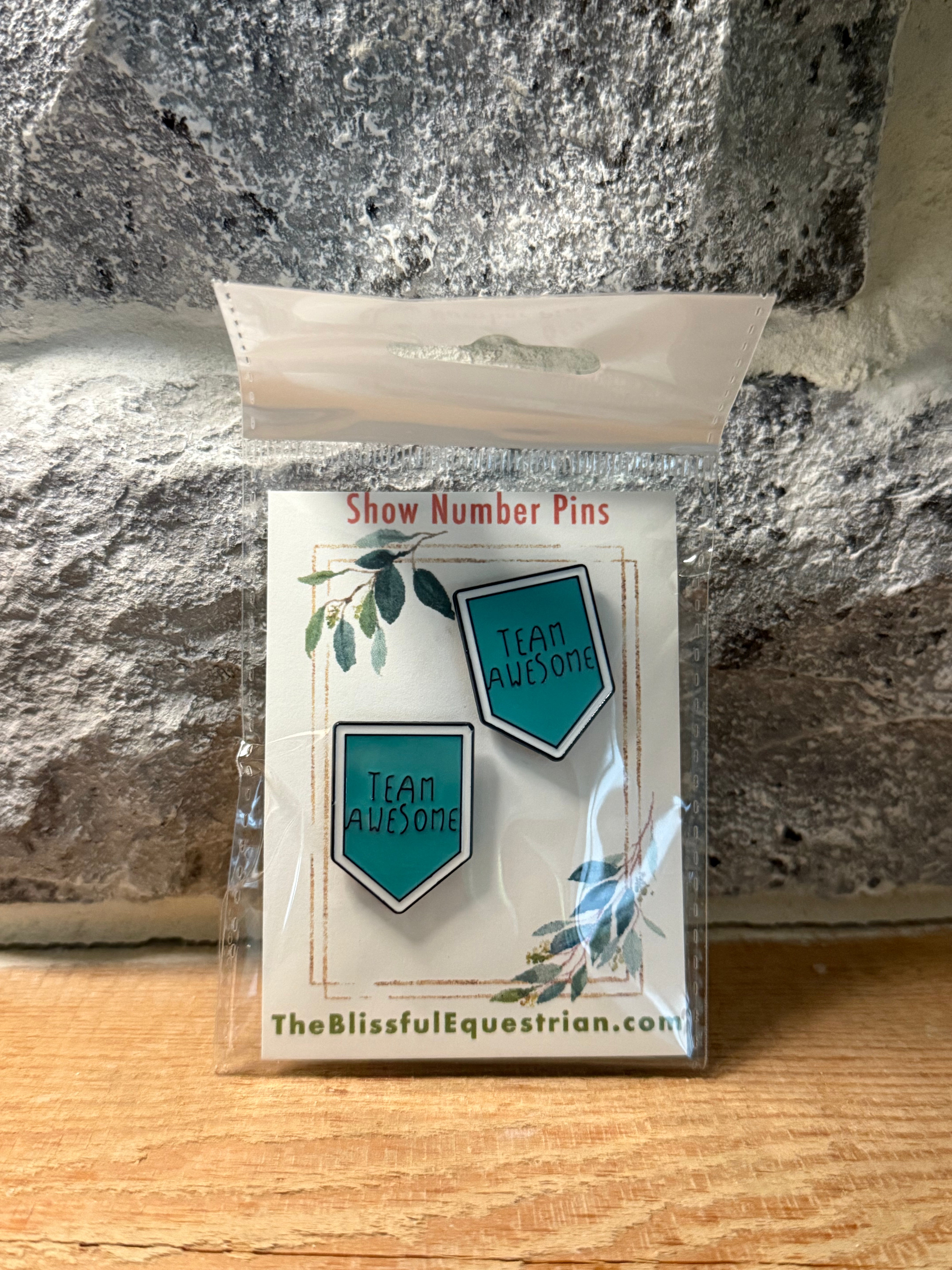 Hey Jumpers & Dressage riders! Add some flair to your show numbers with these fun show pins!! Comes with a specialized lock for the pin, so it stays put.